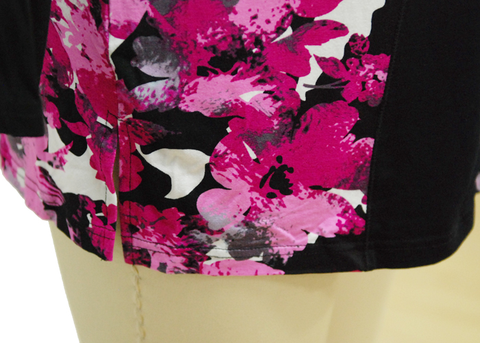 Ladies Long Sleeves Shirt Round Neckline Allover Floral Printing With Black Patch Insert At Front