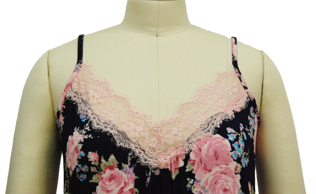 Ladies Reactive printing Camisole Dress , Woman Soft Viscose Night Dress With Lace