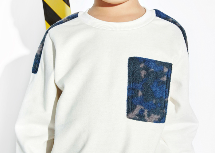 White body with camouflage printing at shoulder ane sleeve,printing patch pocket at front