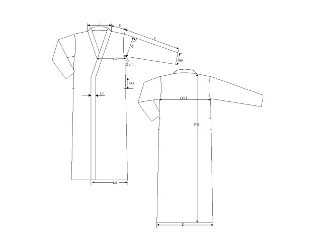 A3 | 1/2 WAIST X1 AT CENTRE FRONT BELOW NECKLINE | 42 | 45 | 48 | 51 | 54 |