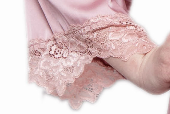 Sexy Pink Satin Home Ladies Night Dresses Sleepwear , Solid Satin Pyjamas With Lace